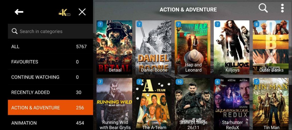 Options available for your perusal and entertainment include Live TV, movies, series.
