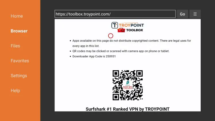 3. Type the Downloader Code for tivimate which is 250931 and click Go.