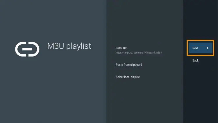 6. You will then see a Playlist is processed message with Channel count and your Playlist name. Click Next.