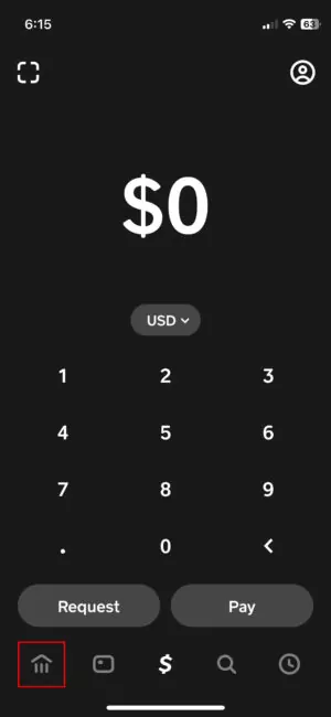 - Tap on the Money tab. It looks like a bank building, or your balance, if you have any.
